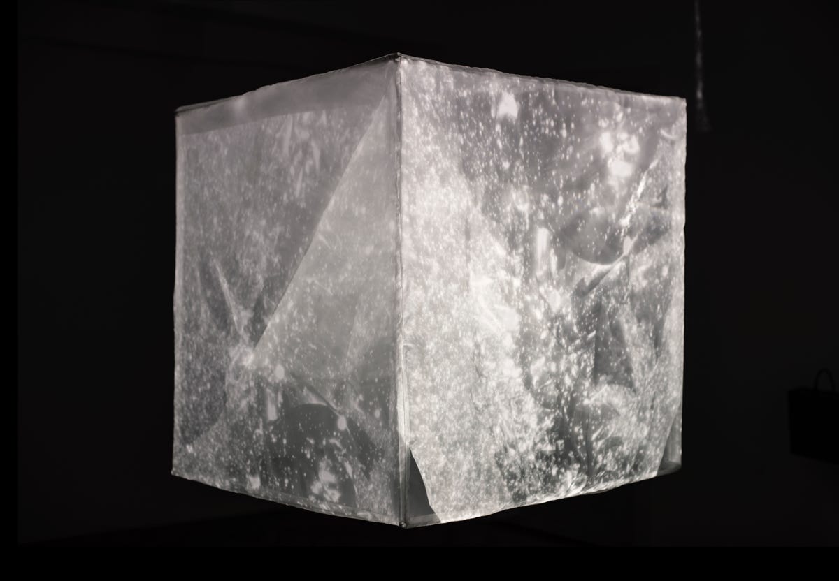 It reveals a world from under the human skin like an ocean under the surface. Investigating spaces and no-spaces governed by the choice of thickness visibility from the MRIs. With a triple projection on sculptural surfaces the idea of 3-dimensional world converted to 2-dimensional world is again joined in a constructed dimension. Choreographed movements of light and reflections in added and altered dimensions connects to an existing awareness of innards dimensions.